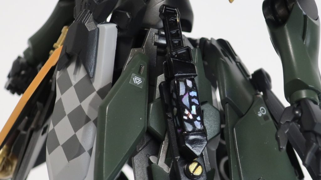 ホロライブの儒烏風亭らでんをイメージしてガンダムファラクトを改造しました。貝とUVレジンを使い擬似的に螺鈿を表現。