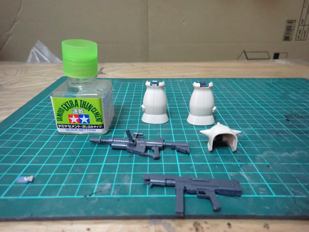 136 HGの陸戦型ジム制作しました。 武器類の合わせ目処理…