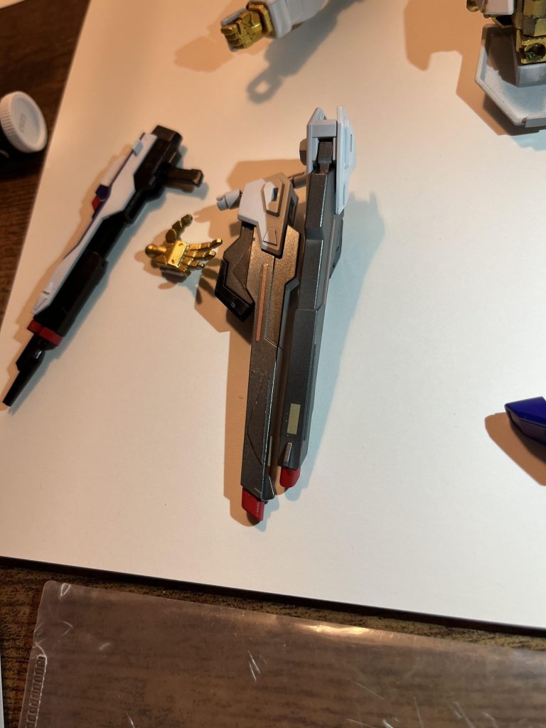 右手のビームシールド発生装置は墨入れしたら割れてつけられなくなりました。