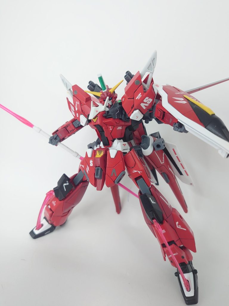 セイバーと称していますが殆どの箇所は他ガンダムパーツで成り立っています。製作開始時はキュリオスとのミキシングで行こうと思っていましたが、SEEDFREEDOM公開からのアメイジングズゴック等Twitterでメイジン・カワグチとの些細な関連性が話題になり急遽路線変更して今の機体になりました。