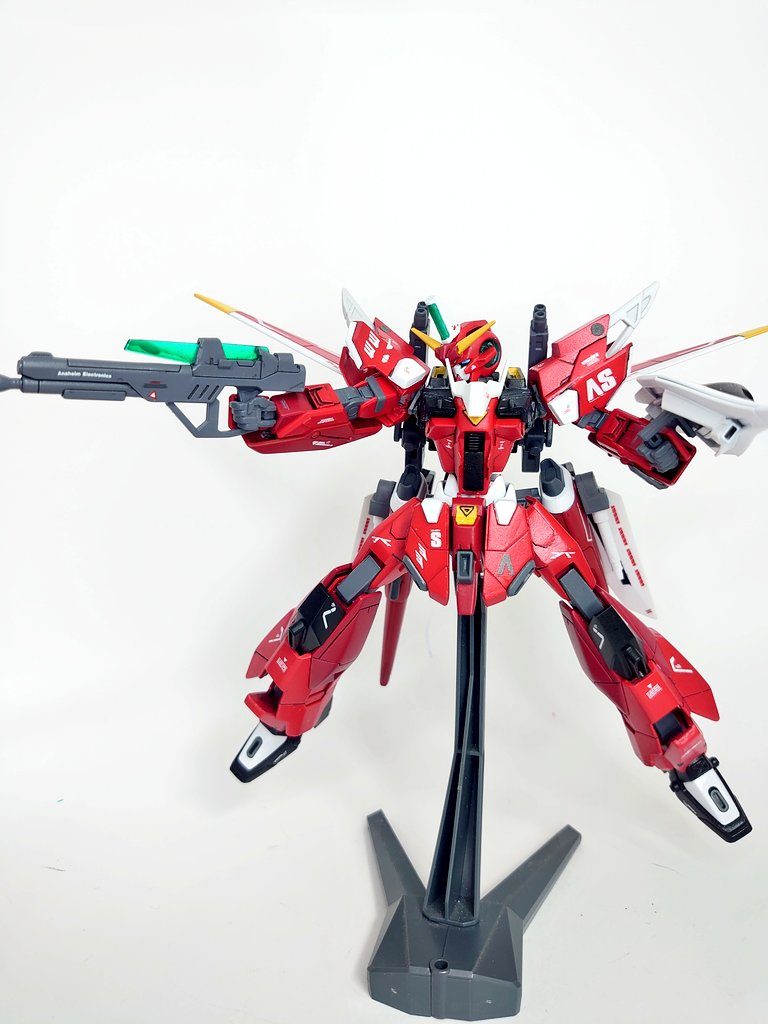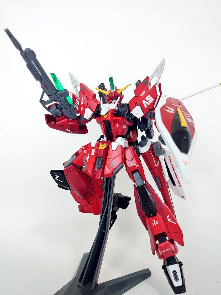 元機体のビーム砲を短縮し、ビームサーベルをマウント。MA時の追加翼を装備