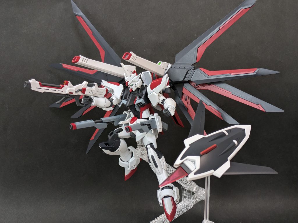 フリーダム&ジャスティスのミキシングで、これぞキラとアスランの友情パワーの結晶です。カラーパターンはフリーダムを参考にして、ジャスティスの赤をメインに使用