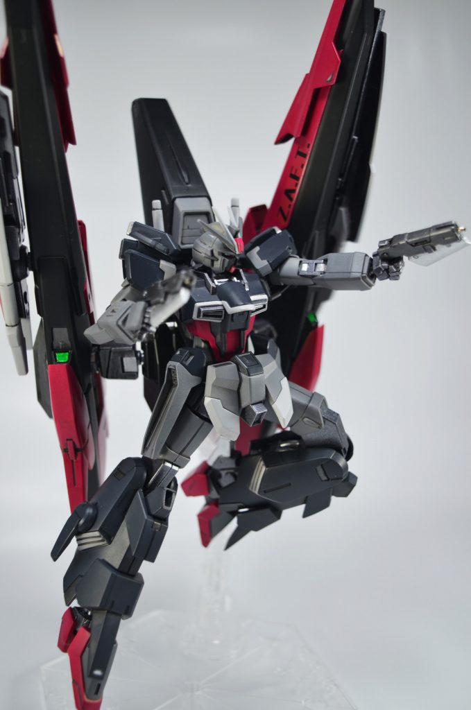 今回もガンダムマーカーエアブラシによる塗装で、色はシャアレッドとかファントムグレーでコメット(彗星)っぽくしてみました。