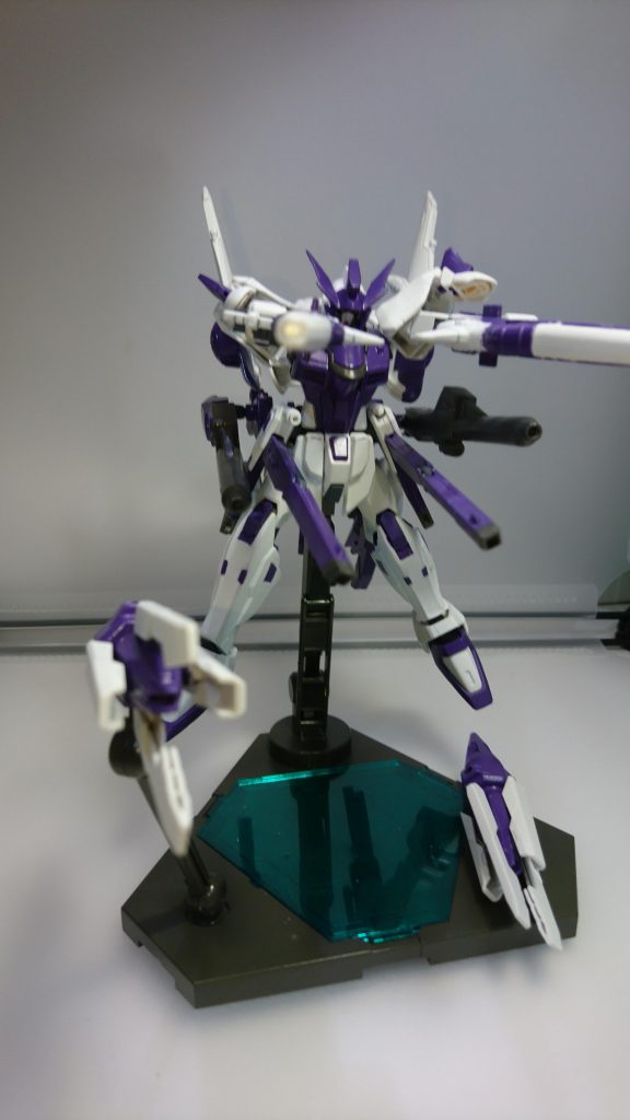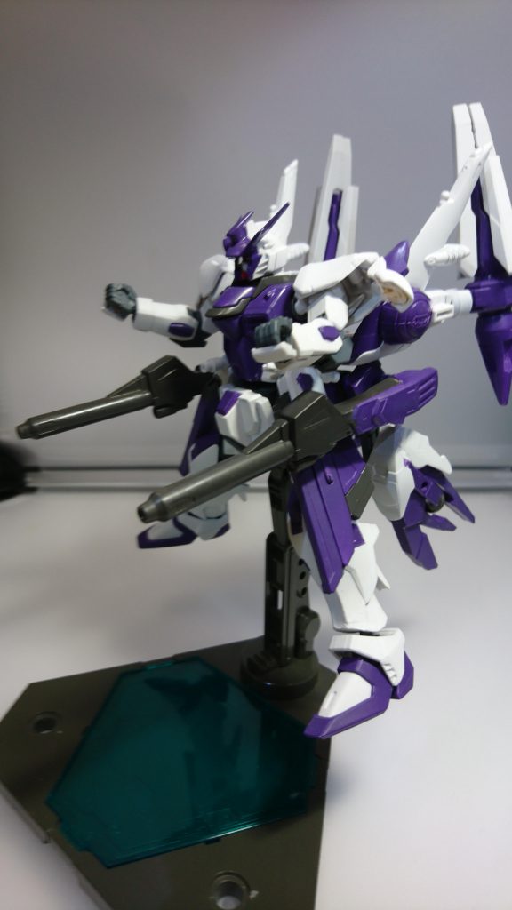 紫の配色なのは、元々のフリーダムの青のフェイズシフトに強度を上げる目的で機体を弄った結果、強度と運動性のバランスが整った紫のフェイズシフトになった。という設定です( ̄▽ ̄;)