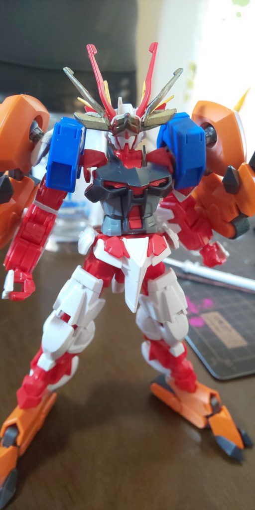 頭部に直接あるアンテナにはインパルスのアンテナを二等分して張り付け、前面のアンテナには戦国アストレイのアンテナを一つにもう一つを三等分して張り付けました。