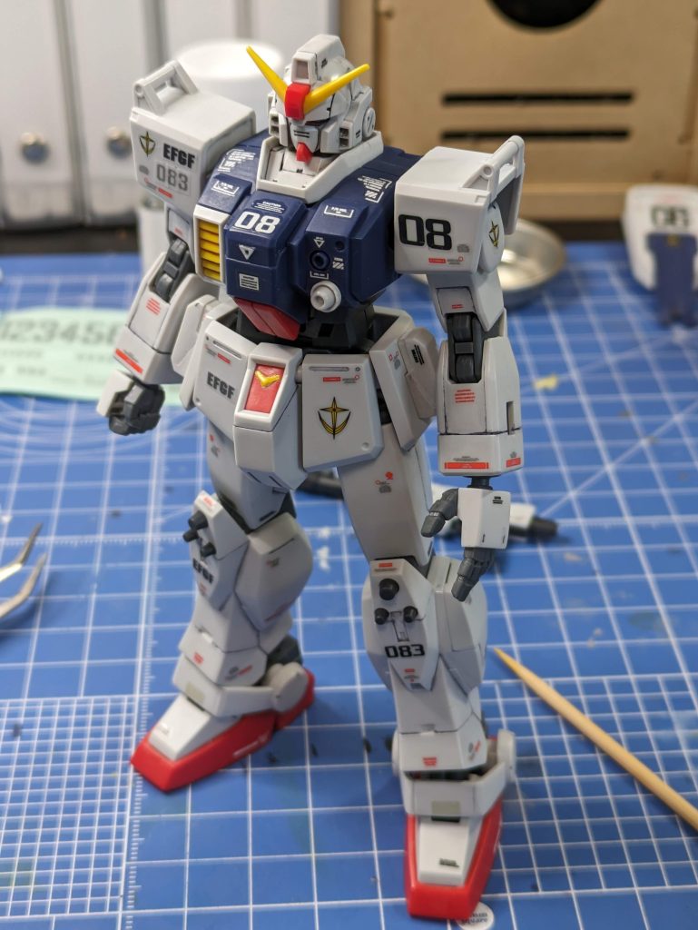 陸戦型ガンダムを成型色仕上げ+ウェザリングとチッピングで陸戦型ならではの汚れとダメージ感を表現してみたいと思って制作しました(^^)