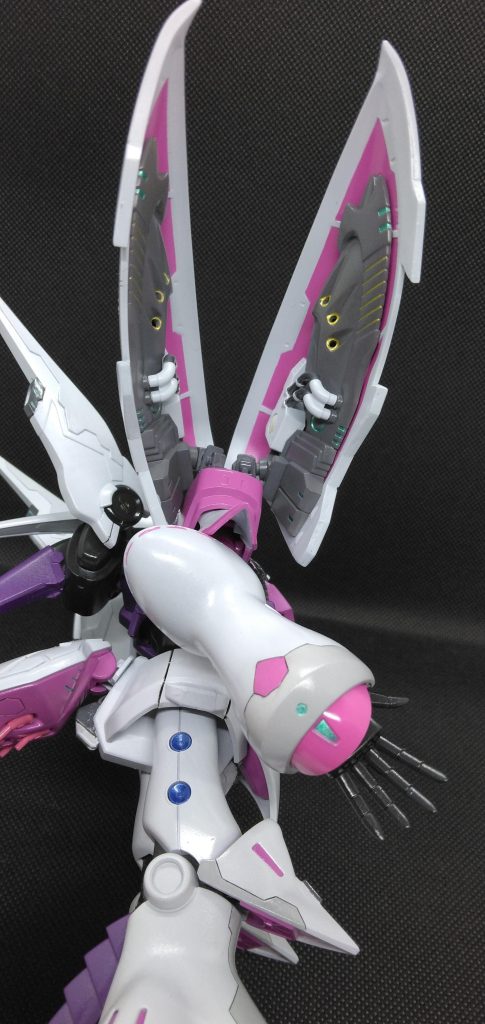 キュベレイの中でどうしても変えたかった所が、ファンネルコンテナが胸部に付いている所とバックパックが無いことだったので、コンテナを下部に付け替え、バックパックを追加しました