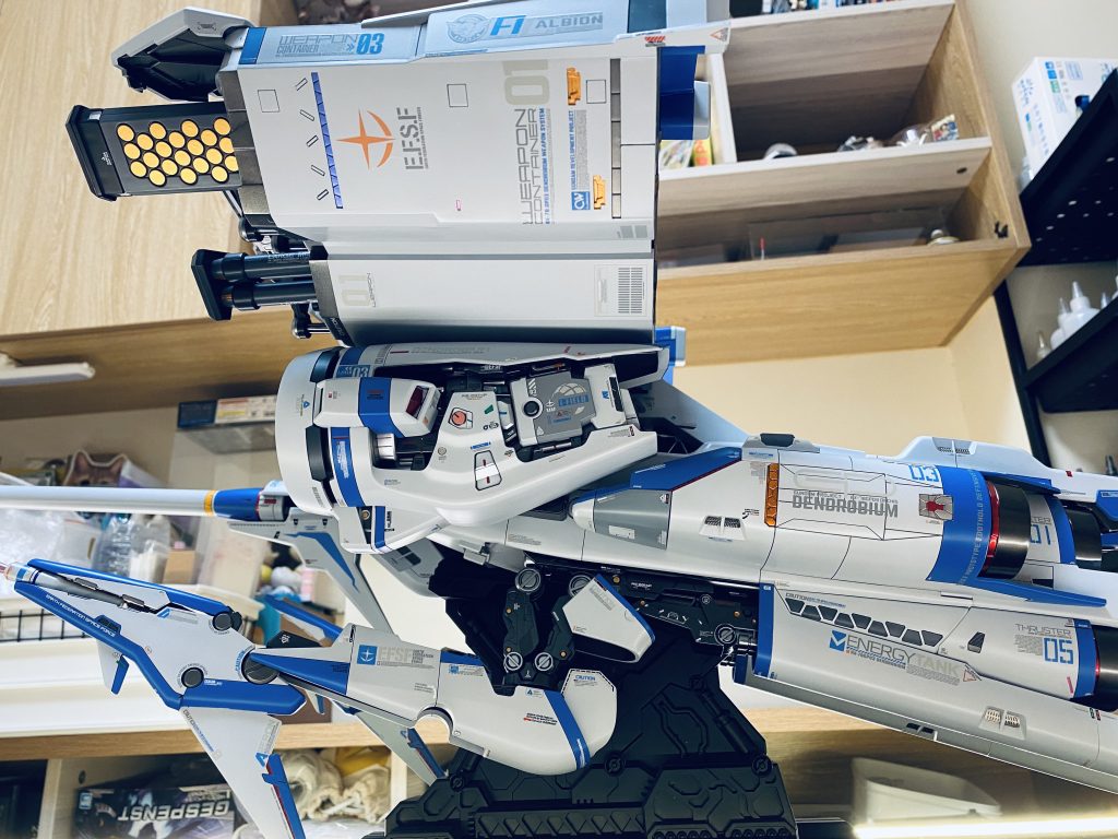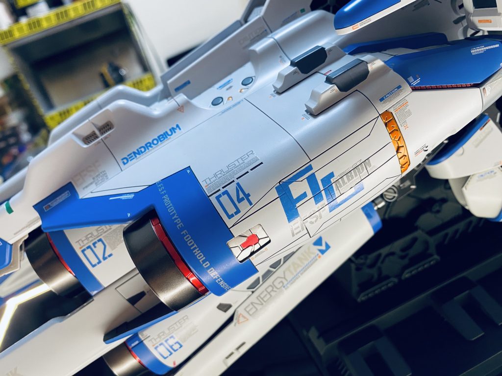 まるでF-1マシーンのようなデカールワーク!SF映画の戦闘機かのようなスタイリッシュなカラーリング!目が輝いちゃいそうな格好良さですね(zaku-kao2)ミサイルコンテナ射出!って、それトブラローネですって🤣w