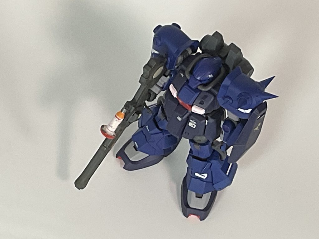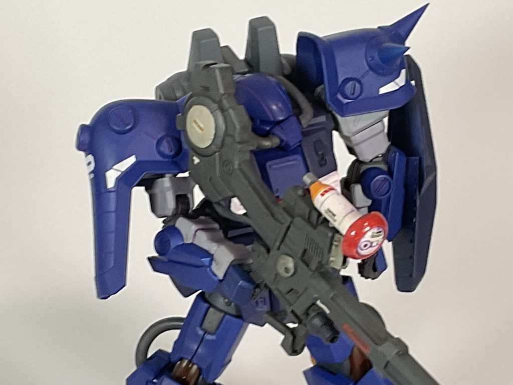 ホビーハイザックには武器が付属していないので試作品のビームライフルというオレ設定で製作。トールギスⅢのビームキャノンを流用してジャンクパーツでトリガーやセンサー部を製作しました、試作の急造品な為に形状がゴテゴテしています