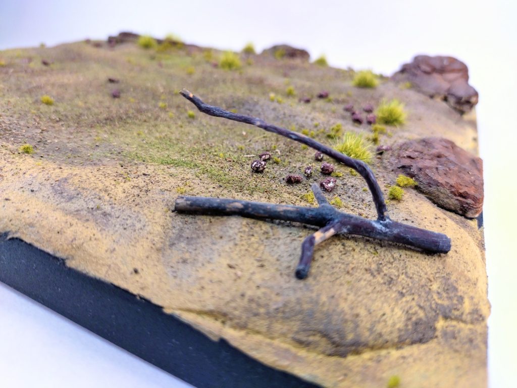 大きめの草と枯れ枝を配置して、艶消し吹いて完成。