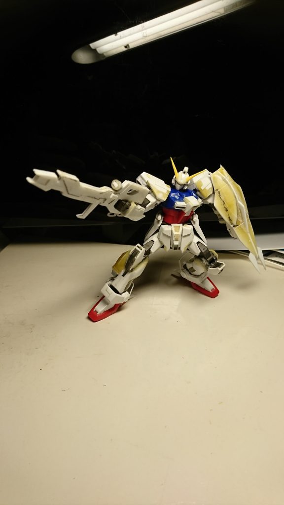 ジェットストライカーは脳内設計出来てたのですが時間が間に合わず。代わりにエールストライカーを塗装して装備させました。