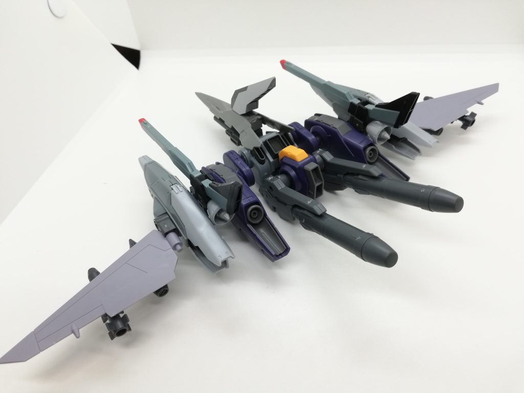 分離して支援機にもなり、合体時には機首がシールドとして左手の武装に懸架されます。