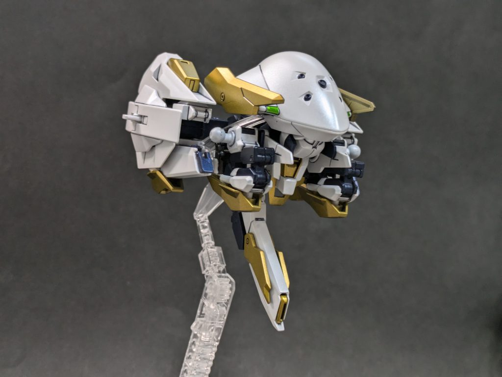 使用したキットはウーンドウォートとティフォエウスガンダムです。女性のようなシルエットのウーンドウォートにラファエルベースのスマートな手足でいい感じにまとまったと思います。