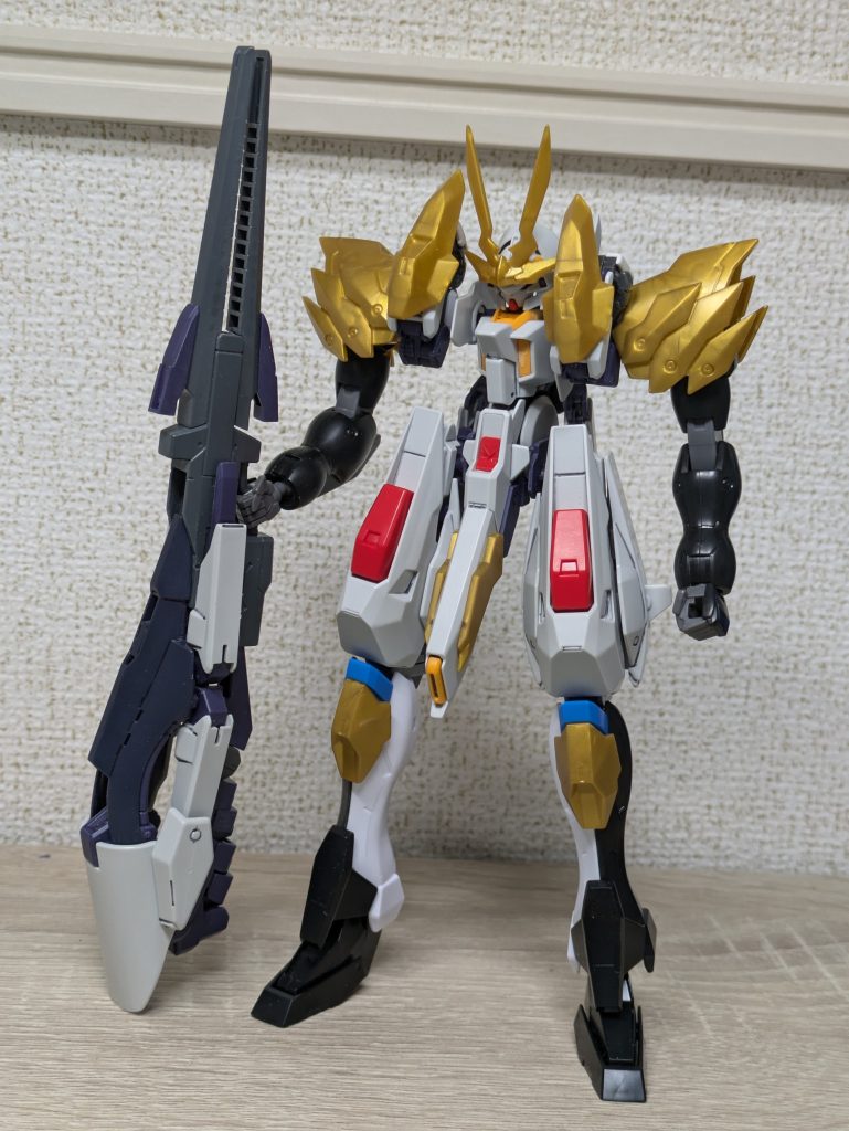 ティフォエウスガンダムの残りパーツで全体的にディテールアップ。デカいツノがお気に入りポイント