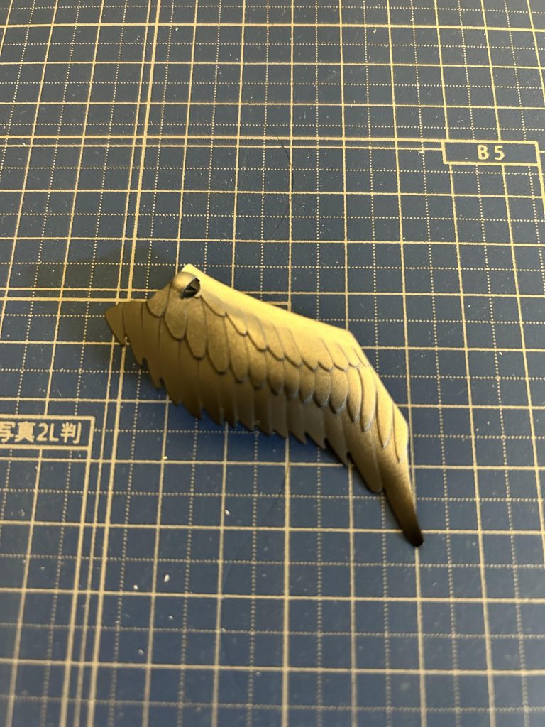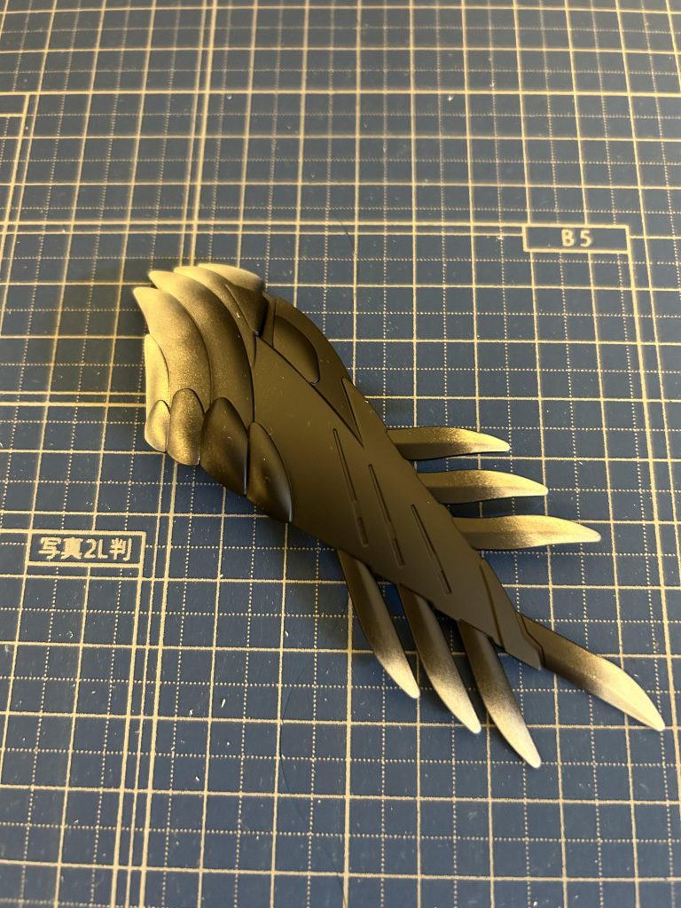 当初、黒系統で統一しようとも考えましたが、やはりアクセントが欲しく、他系統色も混ぜた次第でございます!基本ベタ塗りがメインなので、翼塗装を評価くださり嬉しいです😊