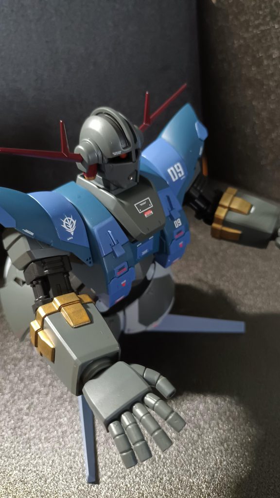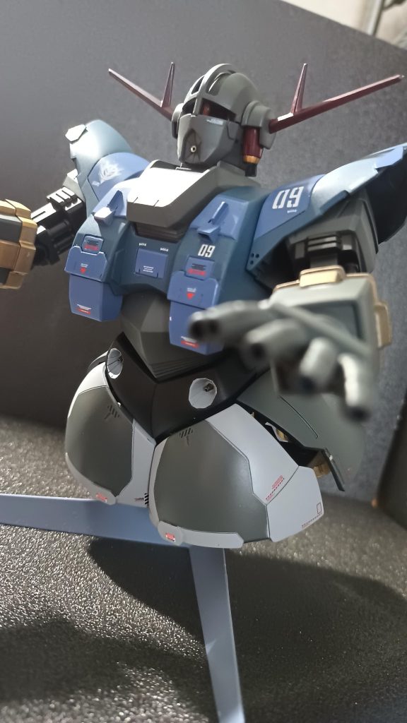 いじった所はスカート部分、アイカメラ、頭部メガ粒子砲部分、胸部小型ダクト追加位で、後はスジ彫りしてプラ版貼っ付けて〜ともうくらいです。