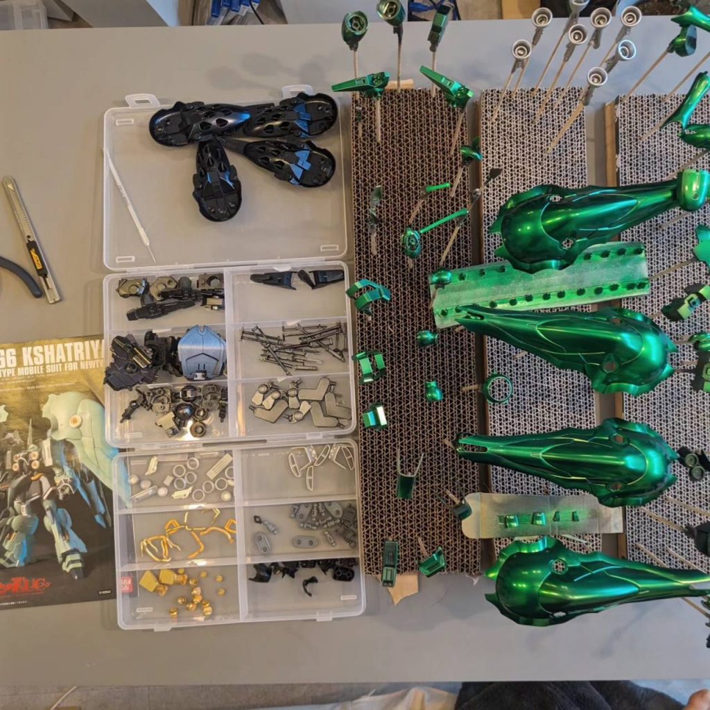 素晴らしい塗装技術もさることながら、綺麗な発色に何層もクリアーグリーンを重ねる必要があるキャンディ塗装にかけた労力を想像するとえげつない集中力だなぁと感動すらします!凄い!私も積んでるクシャトリヤ頑張って塗装します笑