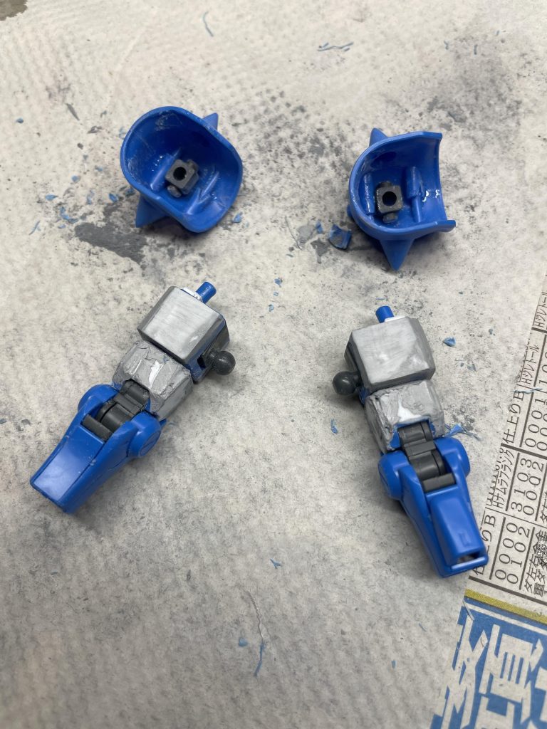 腕も細くて、肩のスパイクがかなり大きく、ブカブカな印象でしたので、腕は全体的に太くしました。それに伴いスパイクアーマーの取り付け方を変えて、よりイカリ肩にしました。