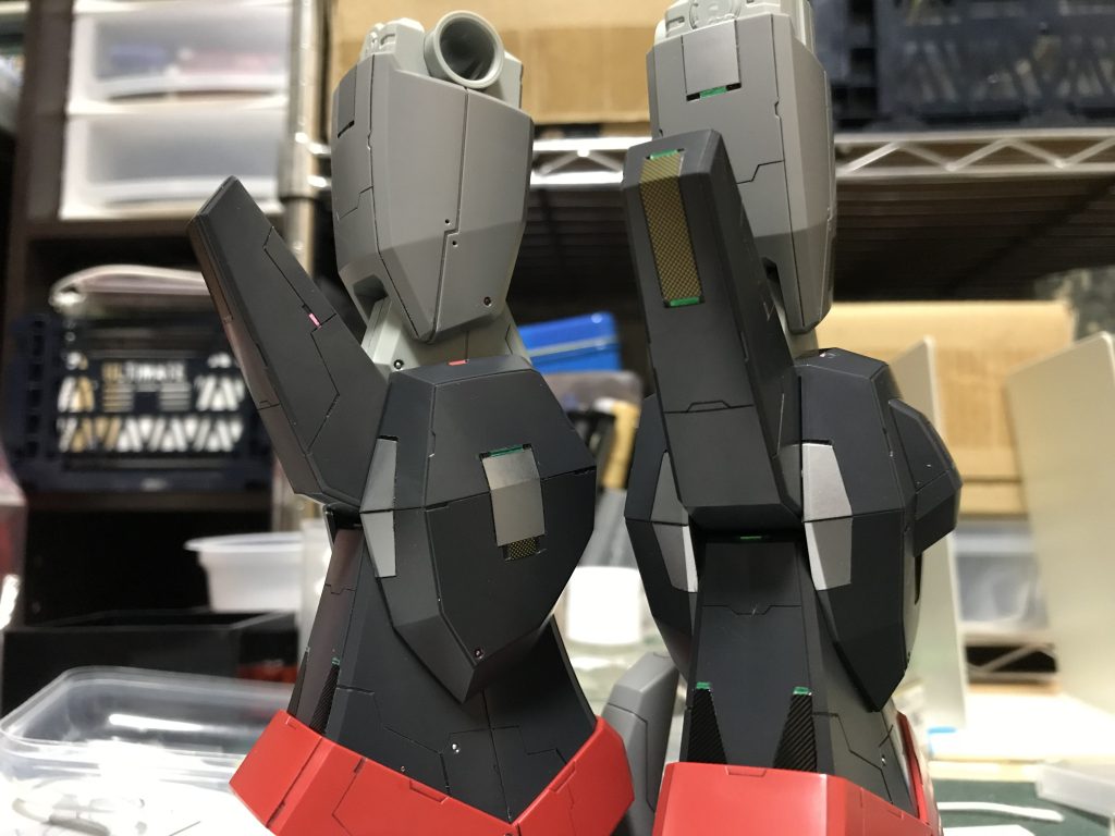 全体的にスジ彫りによるパネルラインの追加、メタルボールの埋め込み、所々色が変わってる箇所はハセガワフィニッシュを用いてスジ彫りしたパネルラインに合わせ質感や材質の違いを表現してみました。