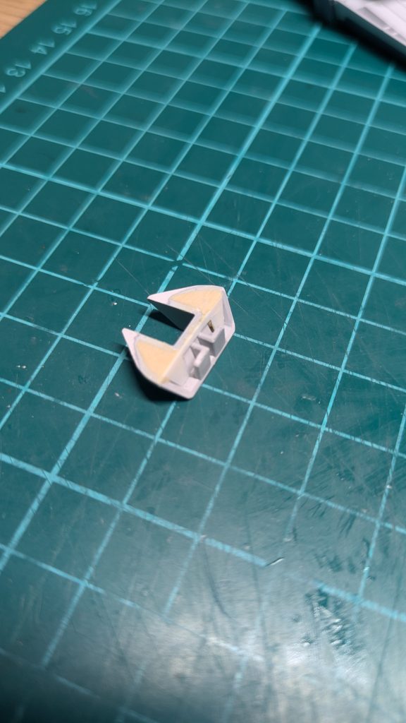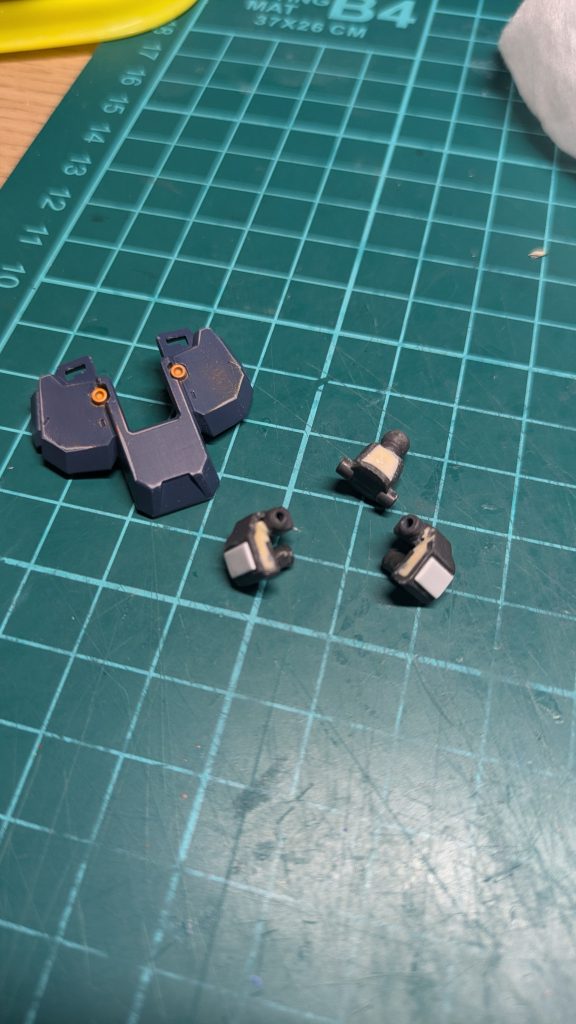 工作はガトリングスマッシャーの合わせ目を消して、首の後ろと足首、盾の先端の肉抜きを埋めたくらいです。