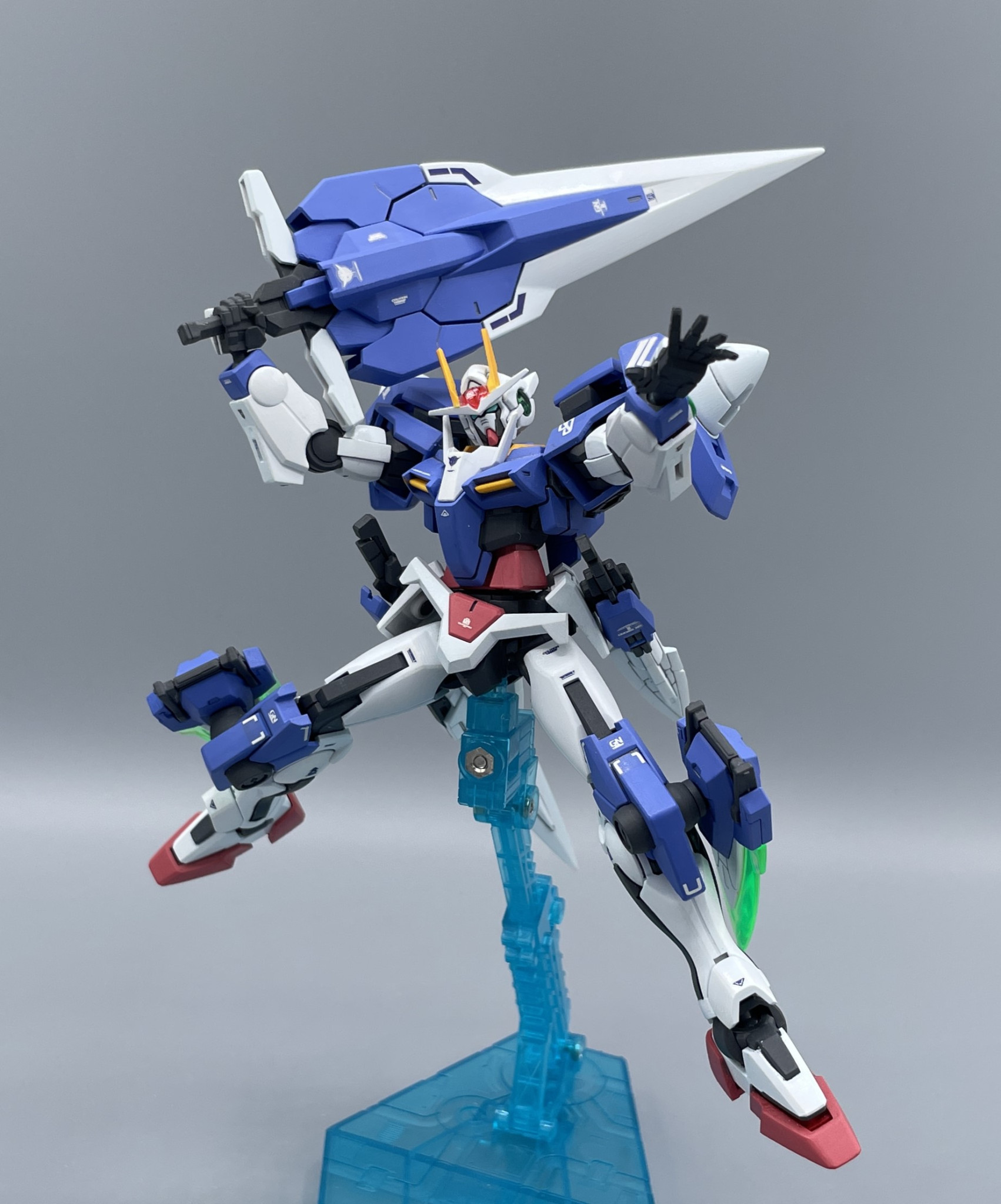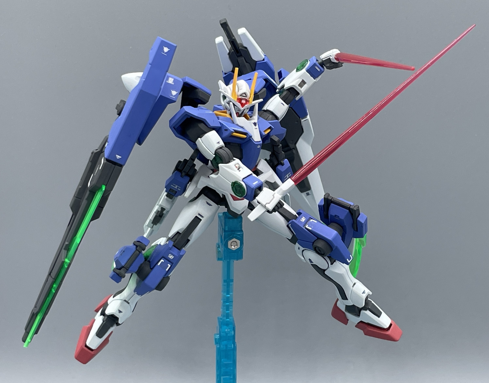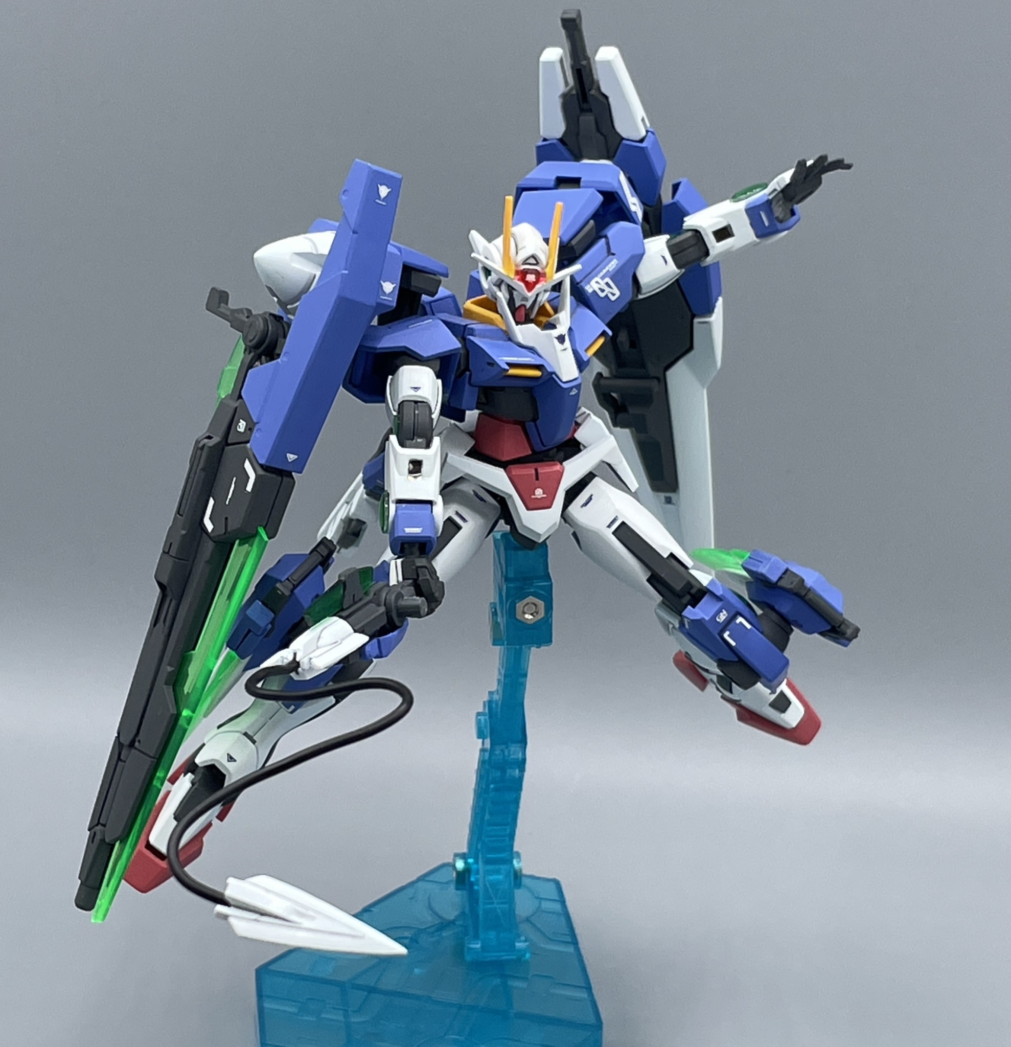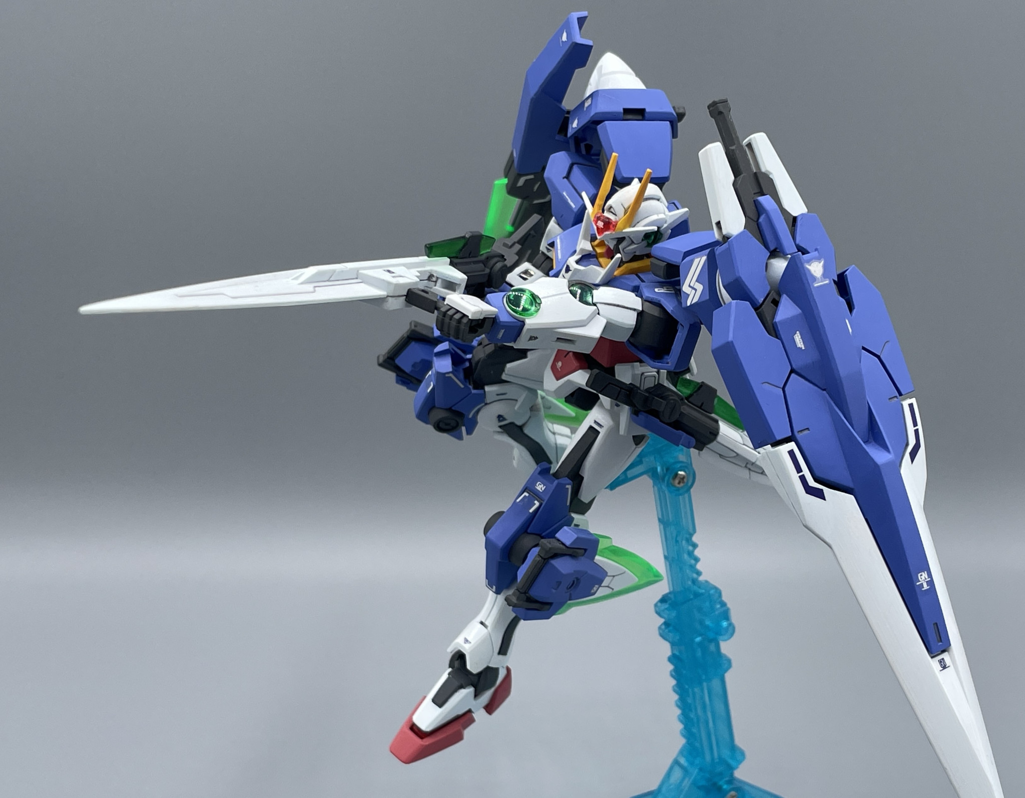 HGOO「ダブルオーガンダム セブンソード/G」を筆塗り全塗装で仕上げました。本機はアニメ劇中には登場せず、外伝のOOV戦記に登場する機体です。