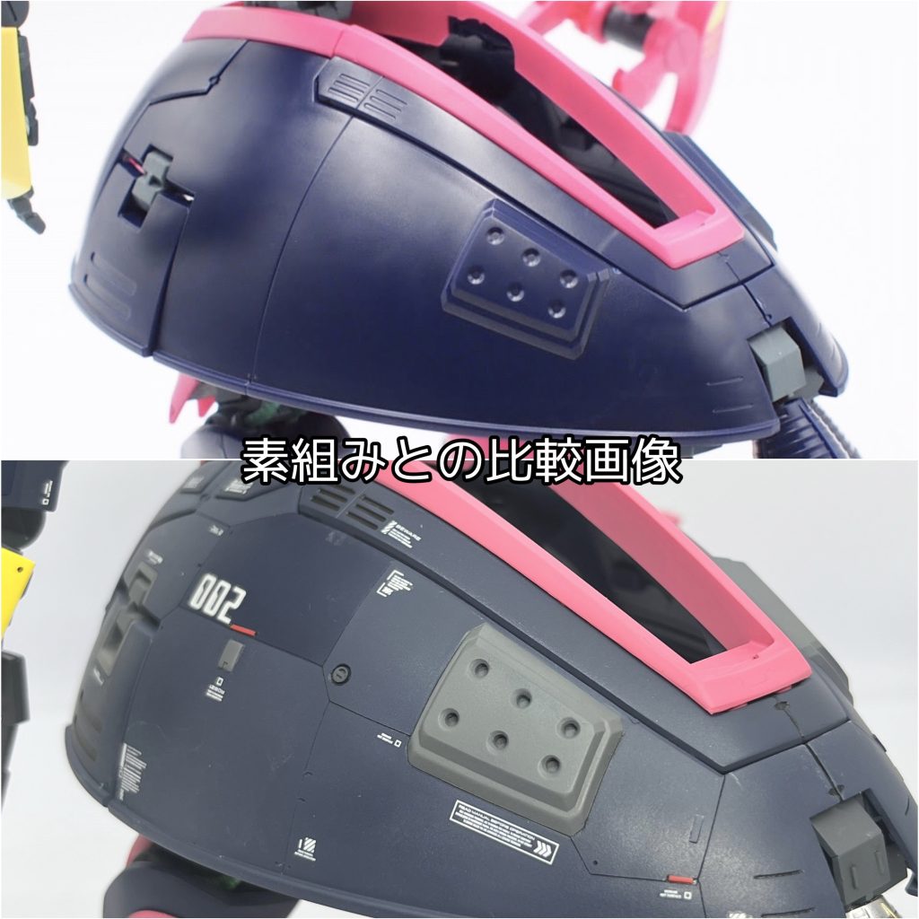 素組みではかなりノッペリした印象なので、スジボリ、プラ板、プラチップなどで徹底的に情報量を増やしました。