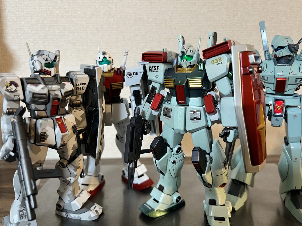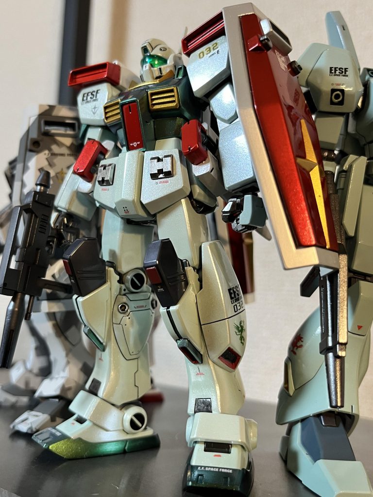 HGUCジムIIIをクレオスのクリスタルカラーなどで全塗装して製作しました。