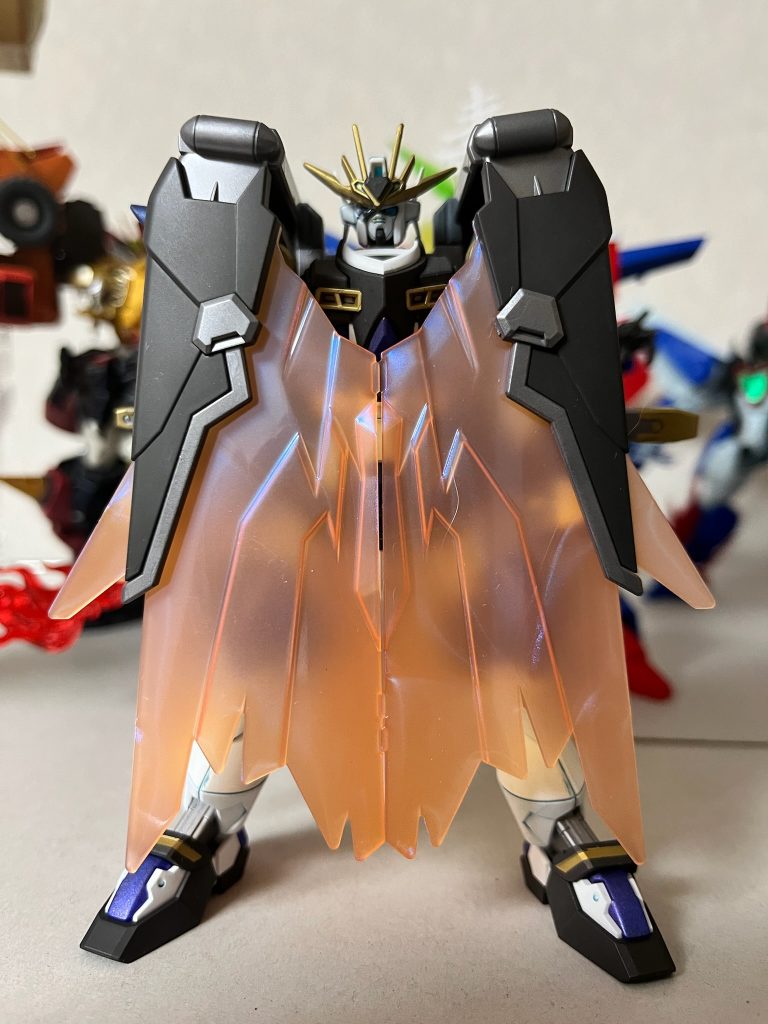 このポーズをとった時、スパロボシリーズの雷鳳っぽくしたくなったので腹部やマフラー🧣を赤色に変更しました。