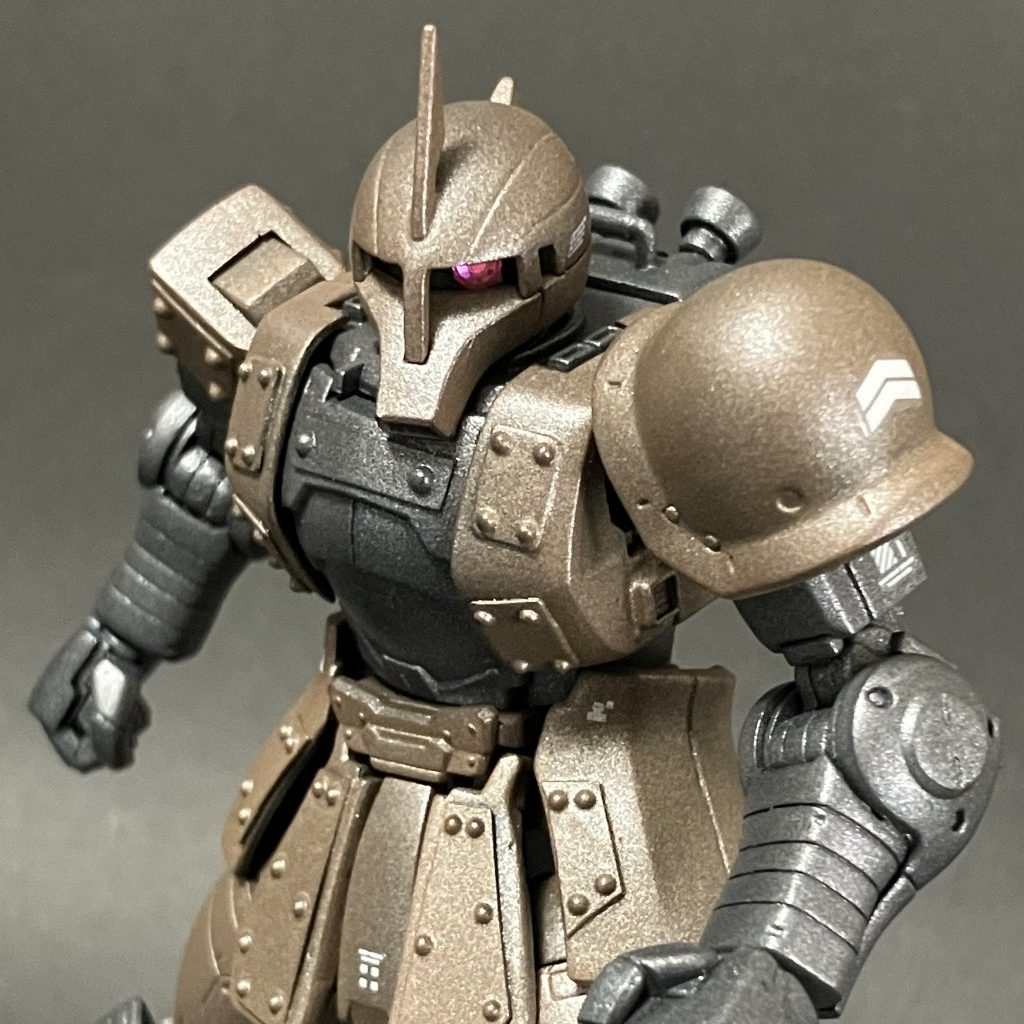 「旧ザク=非武装」というイメージがあったので、試しに撮影してみたら、妙に気に入ってしまった次第です。着目していただいて大変嬉しかったです。ありがとうございました。 !(^^)!