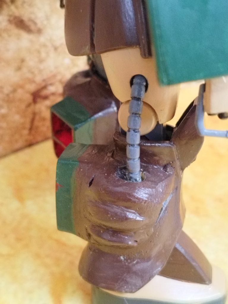 塗装が汚いのですが、この股間軸を息子が折ってしまったことから、なら、ついでに改造しちゃうか、ということでディザートザクの誕生のキッカケになりました。、