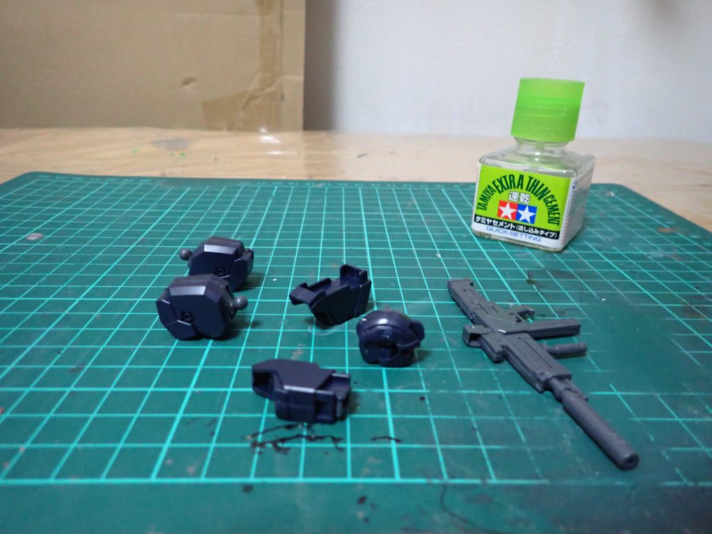 136 HGの陸戦型ジム制作しました。 武器類の合わせ目処理…