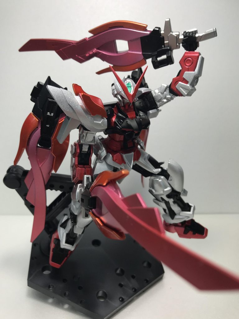 一度やってみようと思っていたグラデーション塗装をやってみました。背中のウイングとソードをピンクと赤のグラデーションにしています。