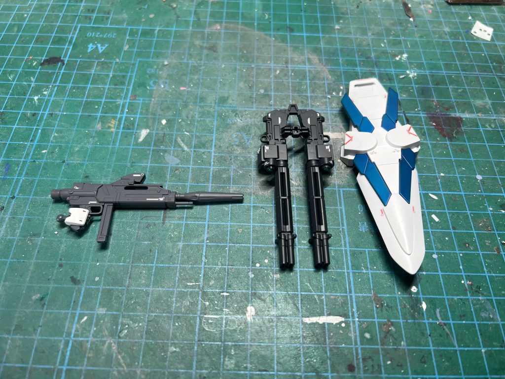 ガトリングの取り付けは腕に3mmの穴を開けてユニコーンガンダムに付属の接続用パーツを取り付け出来るようにしてます