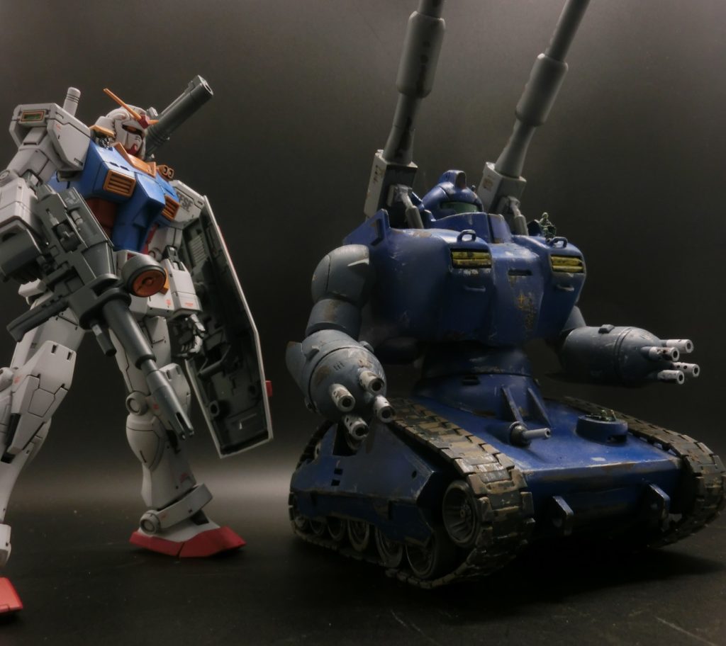 コメントありがとうございます。今回はかなり苦戦しました。最初はオリジンガンタンク初期型を使用して少し手を加えれば簡単にできると考えていたのですが、良いキットなので躊躇して、安価なHGガンタンクを犠牲にしました。ほぼ原形を留めていないので、フルスクラッチでもよかったのではと思いながらも後戻りできずに突き進んだ次第です。気にいっていただき良かったです。