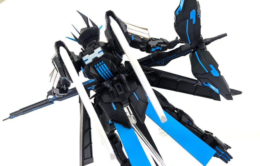 ガイアカラーの蛍光ブルーをスカイブルーの上から塗ったので、UVライトで全身が光ります。