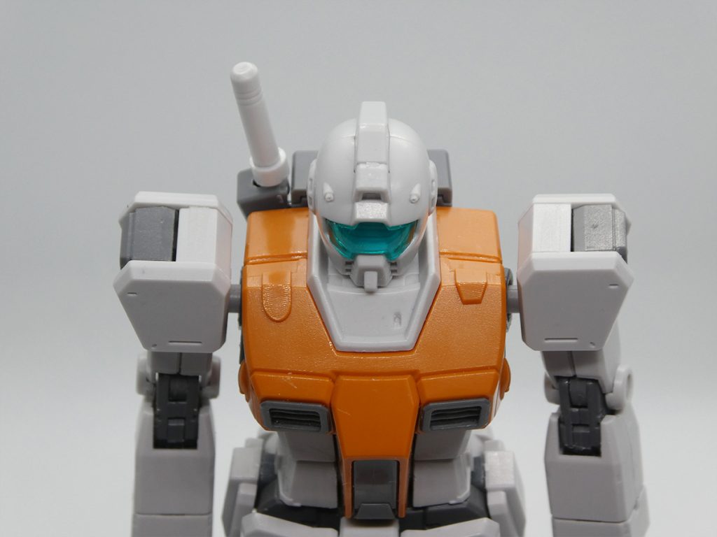 最初はジムといえば”アッサリ&赤でしょう!”なので行く行くはアッサリモールドにして赤に塗装…と思ったのですが、いざ組み上がってみるとオレンジも重機っぽくて悪くないしモールド多めも格好良い!