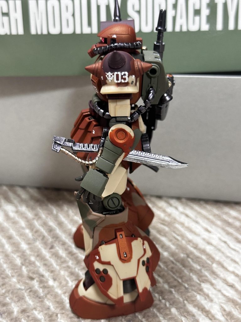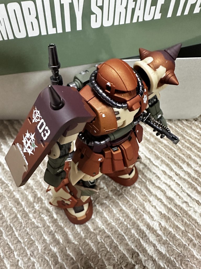 minacoroc… HG 2024.09/29更新 初めてのマスキング塗装! 高機動型ザク 地上用 サンホ機 600 61 いいねしたモデラー(61) 0 0 作品を共有 HG 1/144 高機動型ザク 地上用 サンホ機 初めてマスキングテープを使って塗装してみました!とは言え、技術が足りなかったので、迷彩カラーの水転写デカールは使用せず、同じようにマスクした所を成型色のまま、色表現しました。 外装は、ガイアカラーのヴィクトリーブラウンゴールド、ダークレッド、オリーブグリーン。その他は、成型色。関節はボーンペイントのスモークシルバー。武器はガンダムマーカーEXヘビーガンメタリック。モノアイ、武器のスコープ部は、wave製のアイズ、蛍光ピンクを使用しました。 初めてのマスキング塗装 コメント コメントをして応援しよう コメントにはログインが必要です minacoroc-k SDガンダム世代です…お察し下さい… ガンプラに限らず、プラモデルが好きで、 土、日のやる気がある時にちまちま作ってます! 基本、部分塗装派ですが、 お金と時間とスペースがあったら… エアブラシセットを購入して塗装ブースを 作りたい…等、野望はあります! 見せられる物でないかもしれませんし、 自己満で終わってるかもしれませんが、 記録に残すと言う意味でココに登録させていただきます。 5 アーティファクト 百式 久々に組みました。 ガンダムアーティファクトの百式です。 久々に組みました。小さ… 8 スレッガージム…じゃなくてガンダム!? RG ガンダム Ver2.0を、スレッガージムを元に全塗装し… 5 ライジングフリーダムガンダム・メタルロボット魂風?塗装 持ってはないのですが、完成品のメタルロボット魂を参考に塗装し… 5 ガンダムマークツー リアルタイプカラー? 成形色を生かしたかったので、関節、ゴールド部分、他少々部分塗… minacoroc…さんのページ この作品をお薦め作品に設定する Please login to update your profile! Please login to update your profile! Please login to update your profile! Please login to update your profile!