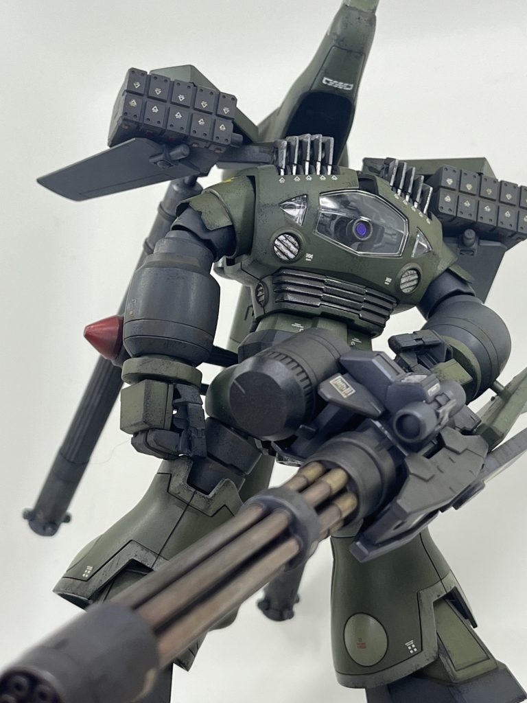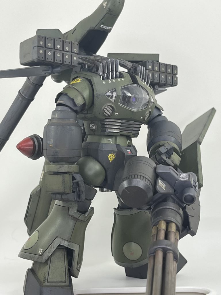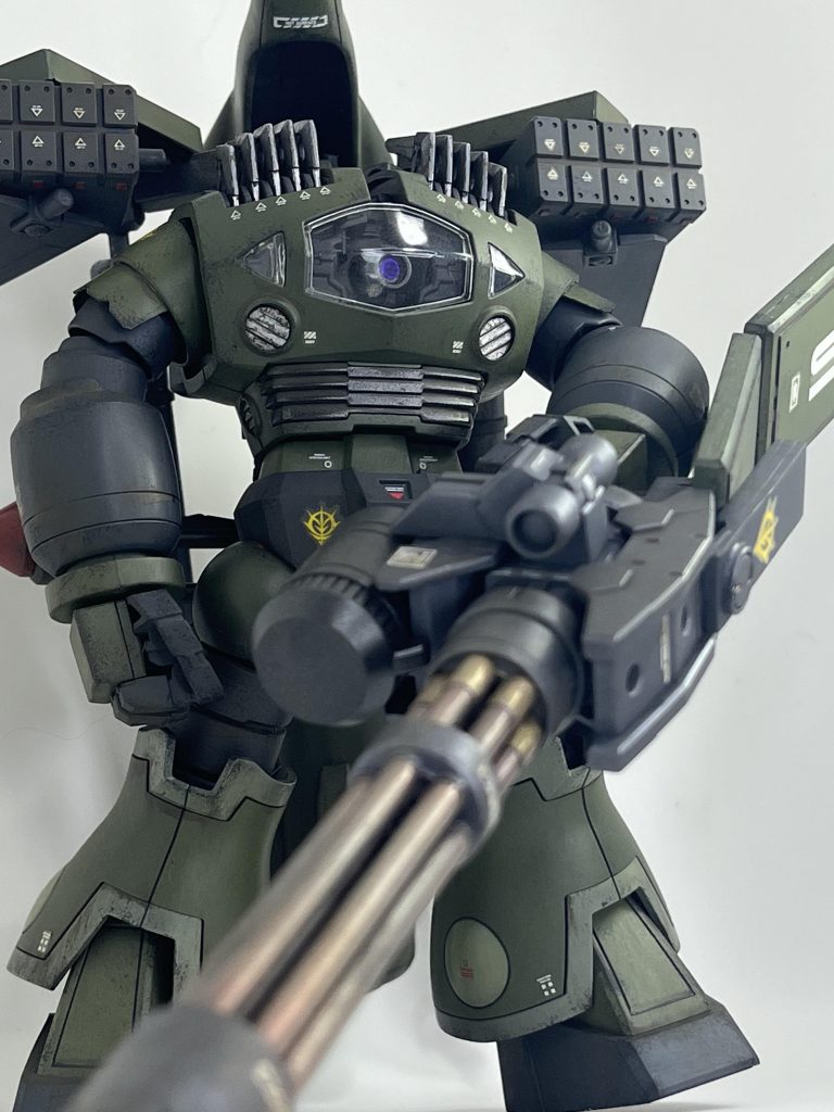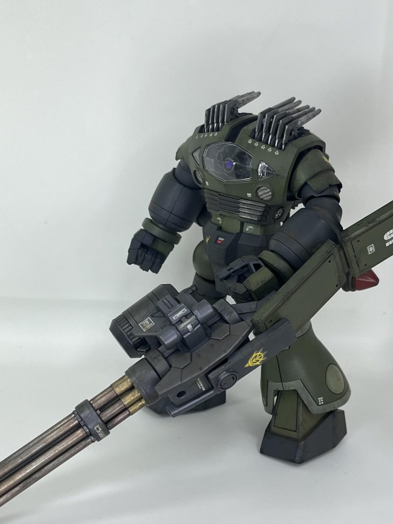 大気圏すら突破しそうなバックパック、ジオン系の機体にベストマッチしているジャイアント・ガトリング、どれをとっても素晴らしい機体ですね!