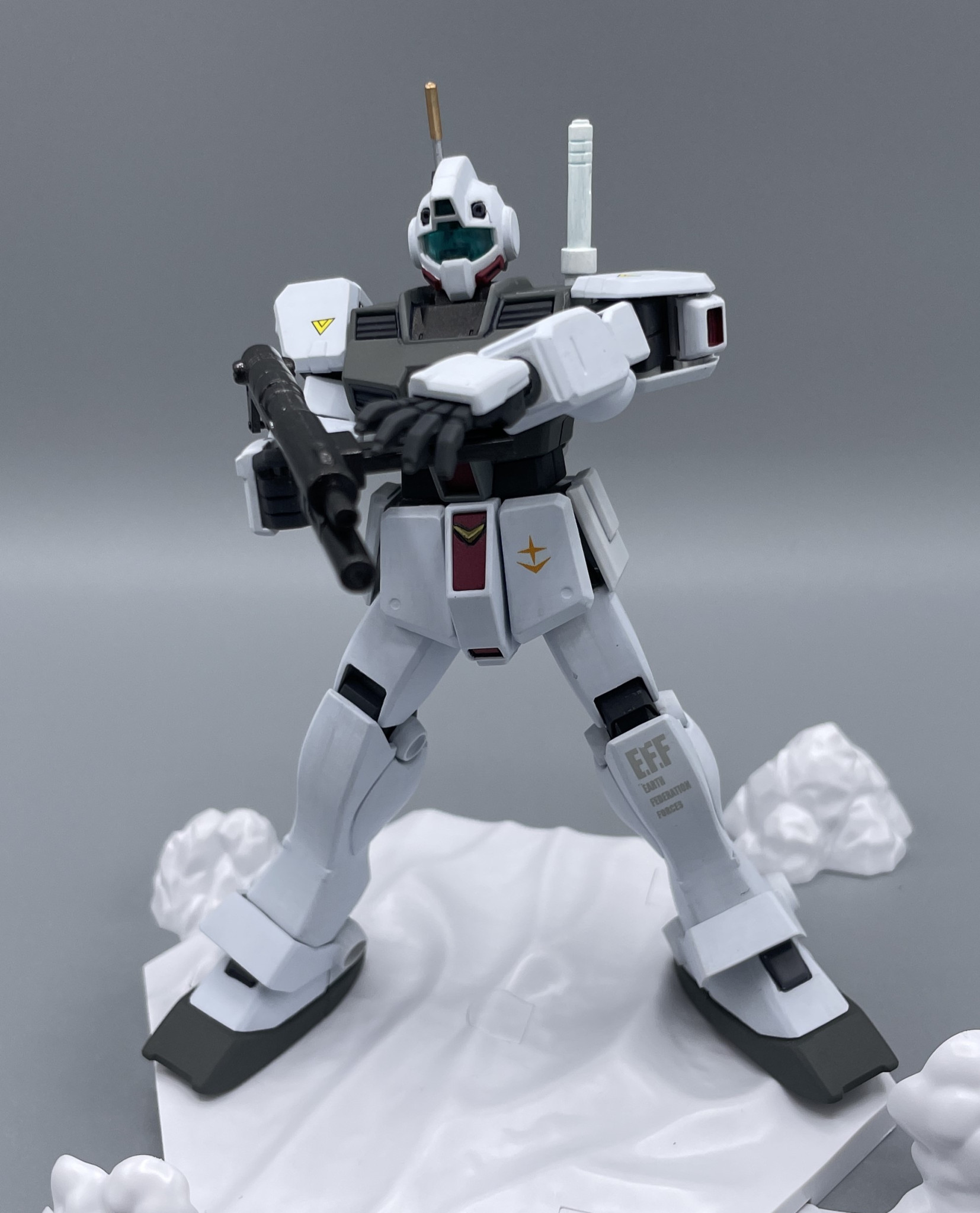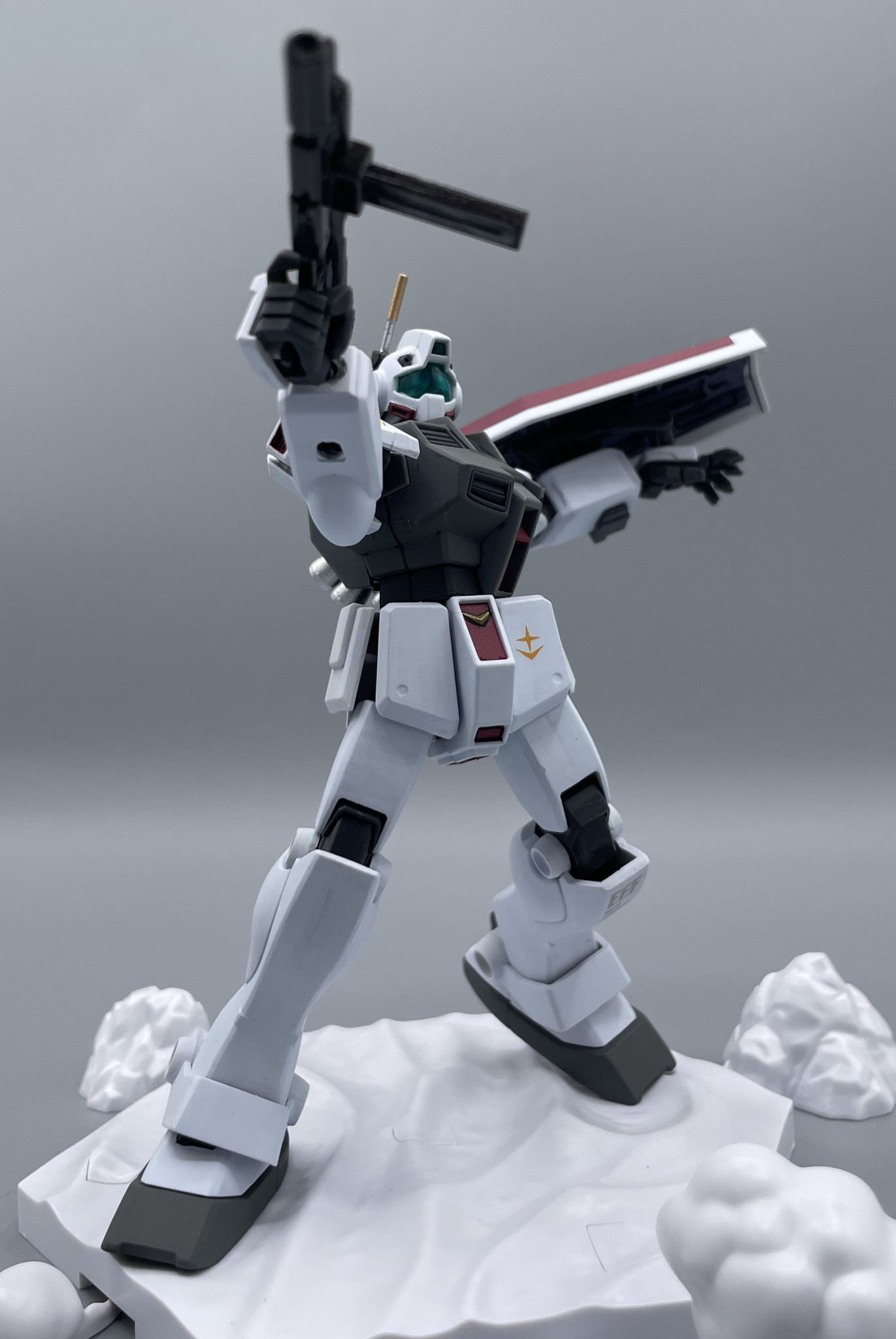 一年戦争で生産されたジムを寒冷地仕様にチューンを施した機体です。着氷・氷結対策、各部の凍結・防寒対策の他、寒冷地の荒天時でも通信が出来るよう、破格の通信の能力が付与されているそうです。