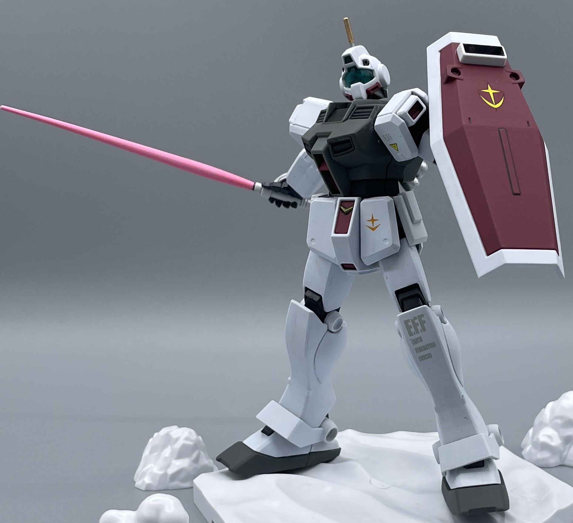 HGUC「ジム寒冷地仕様」を筆塗り全塗装で仕上げました。