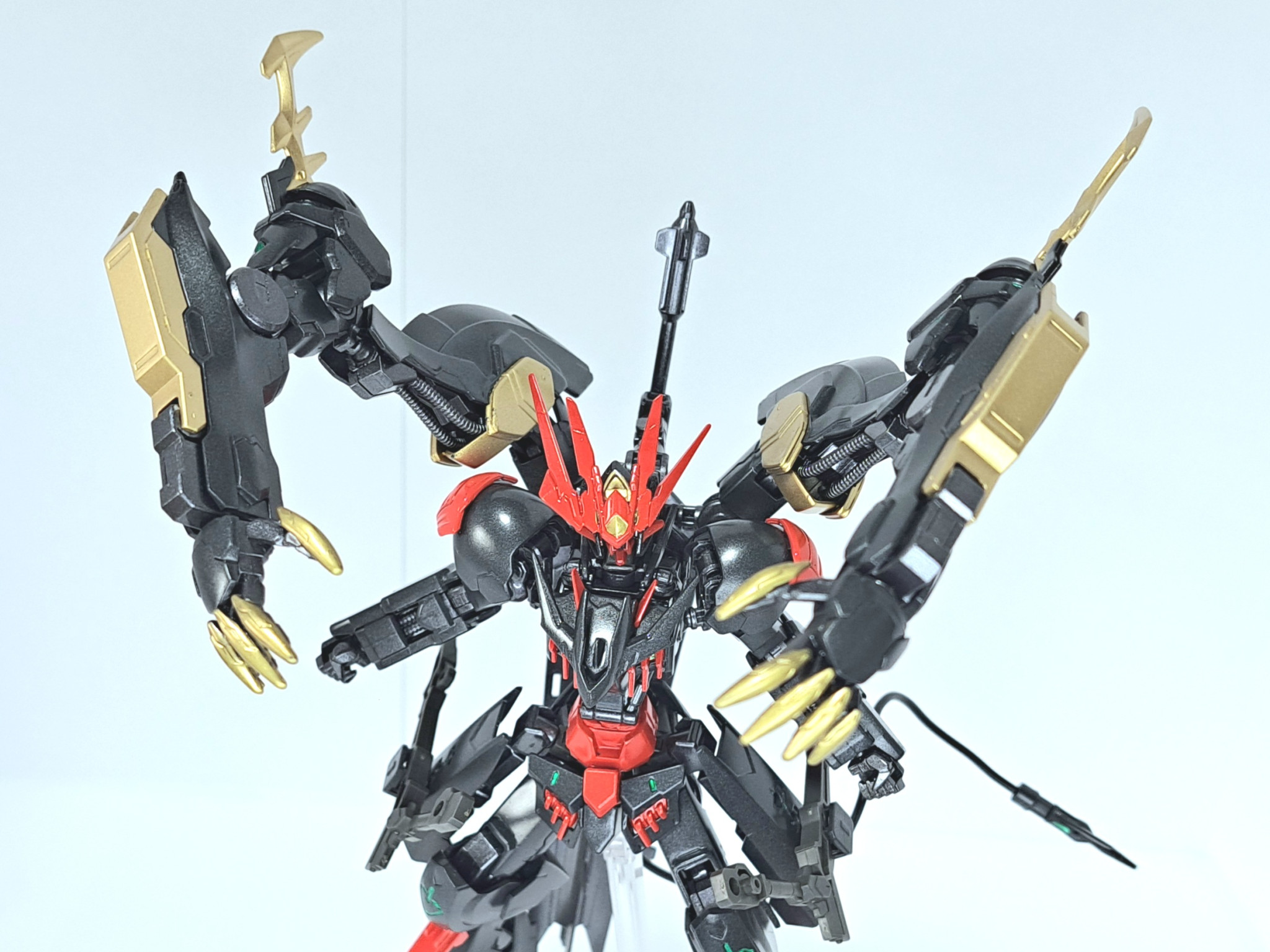 レクスの腕を背部に付けた理由は、片割れが巨大な翼ならこちらは巨大な腕を背に付けようと思ったからです あと普通に腕にしたらバランス悪い