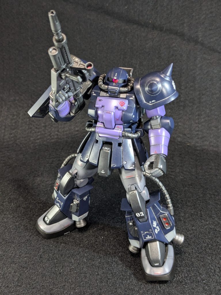 黒い三連星のガイア機として作りましたが、私の中では黒三ザクと云えば角無しのイメージなので基本角無しです。