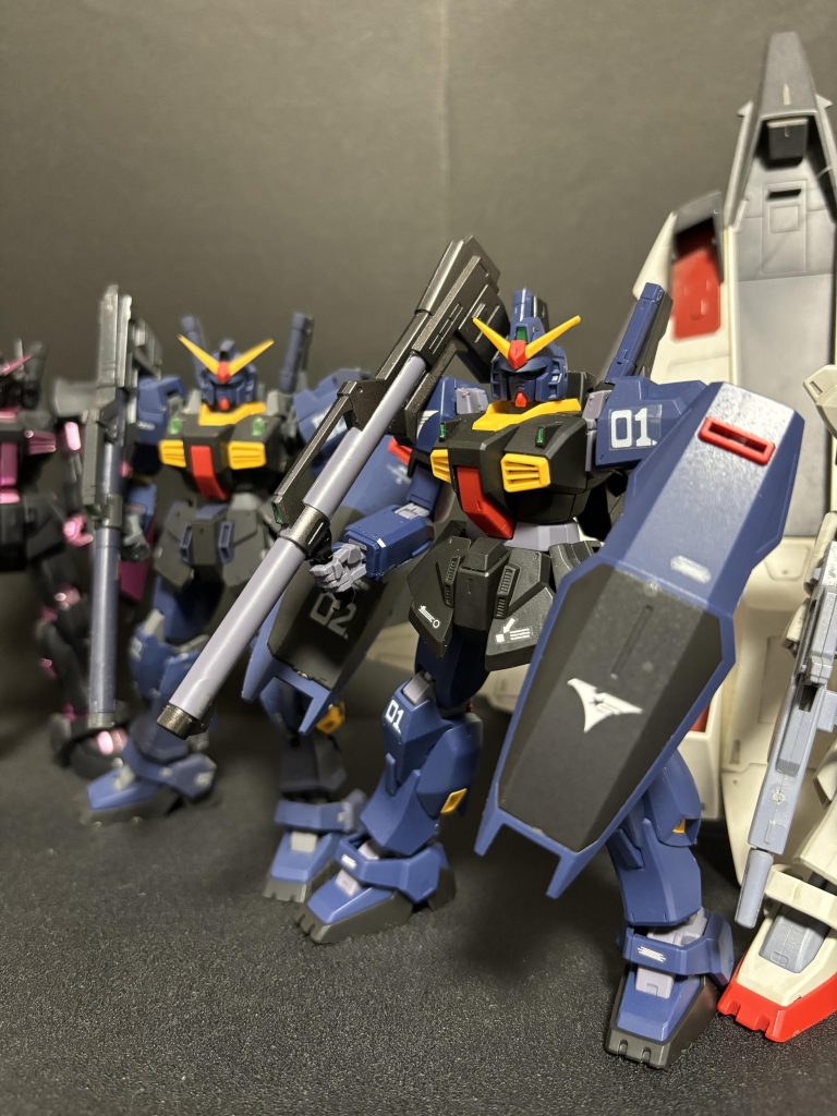 初期に発売?されたエゥーゴカラー+フライングアーマー、エコプラ、RGティターンズ2号機、そして今回のHGティターンズ1号機。