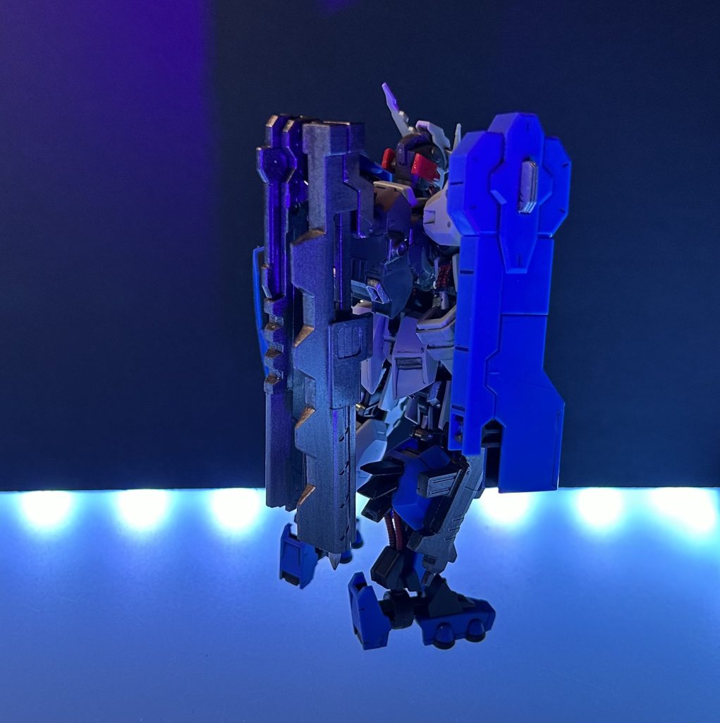 綺麗に製作されていてカッコイイです😆 アシンメトリーなデザインが機体の良さを引き上げてますね😁 武器もカッコイイです👍