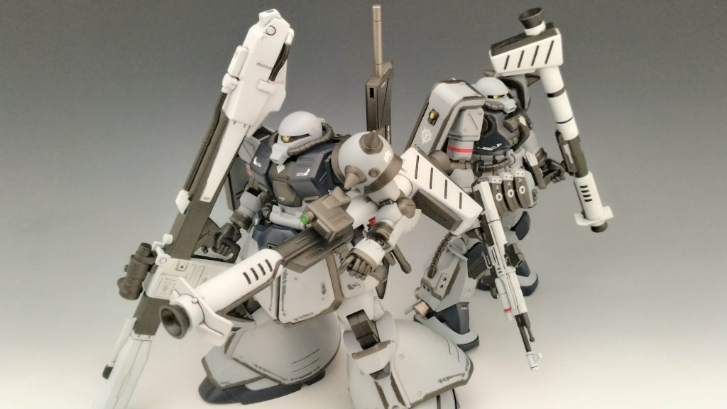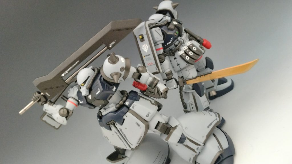 たまたま同じタイミングで塗装に入れましたし両方とも高機動型ですからペア組んでる設定で塗装したら美味しいかなって(zaku-kao5)