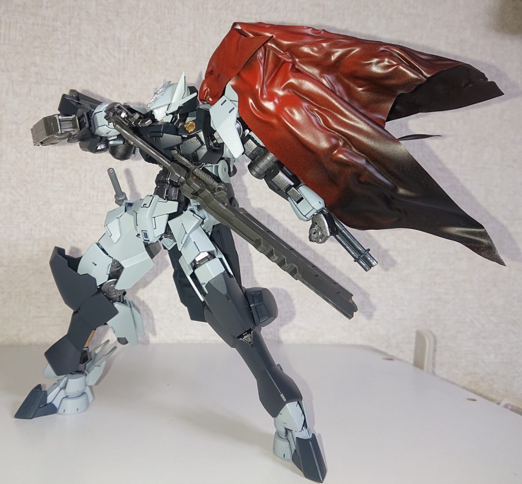 アインの匠が、またかっけーのを送り出してきましたね。マント姿の立ち姿もいいですが、個人的にはツインアックスとデモリションナイフを構える姿に痺れます。アインを更に大型化してるので、大型武装がむっちゃ迫力出て似合いますね。