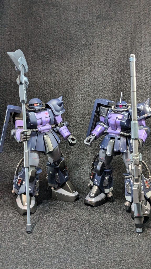 当時、高機動型ザクⅡを3つ揃え(黒三ザク×1、ジョニザク×2)HGのザク2も手に入れて作り出したのは良いのですが、モチベが下がり、少し放置していたらHG高機動型ザクⅡが発表されて今日まで放置していました・・・。