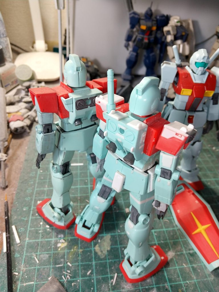 初投稿おめでとう🎉ございます。綺麗なカラーリングですね😁 ジムが並んでいて壮観です。ガンプラ楽しみましょう👍