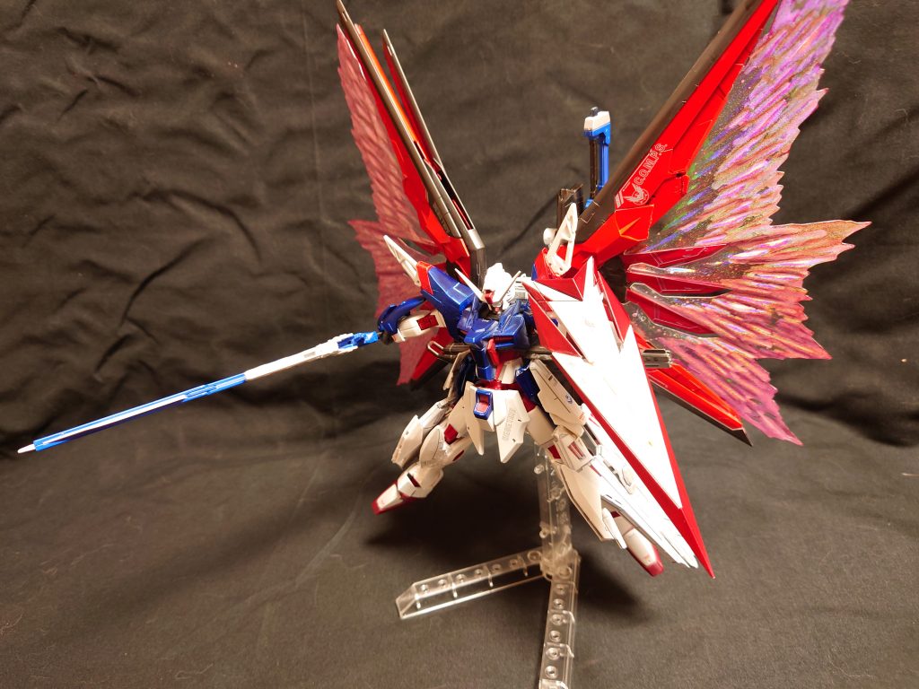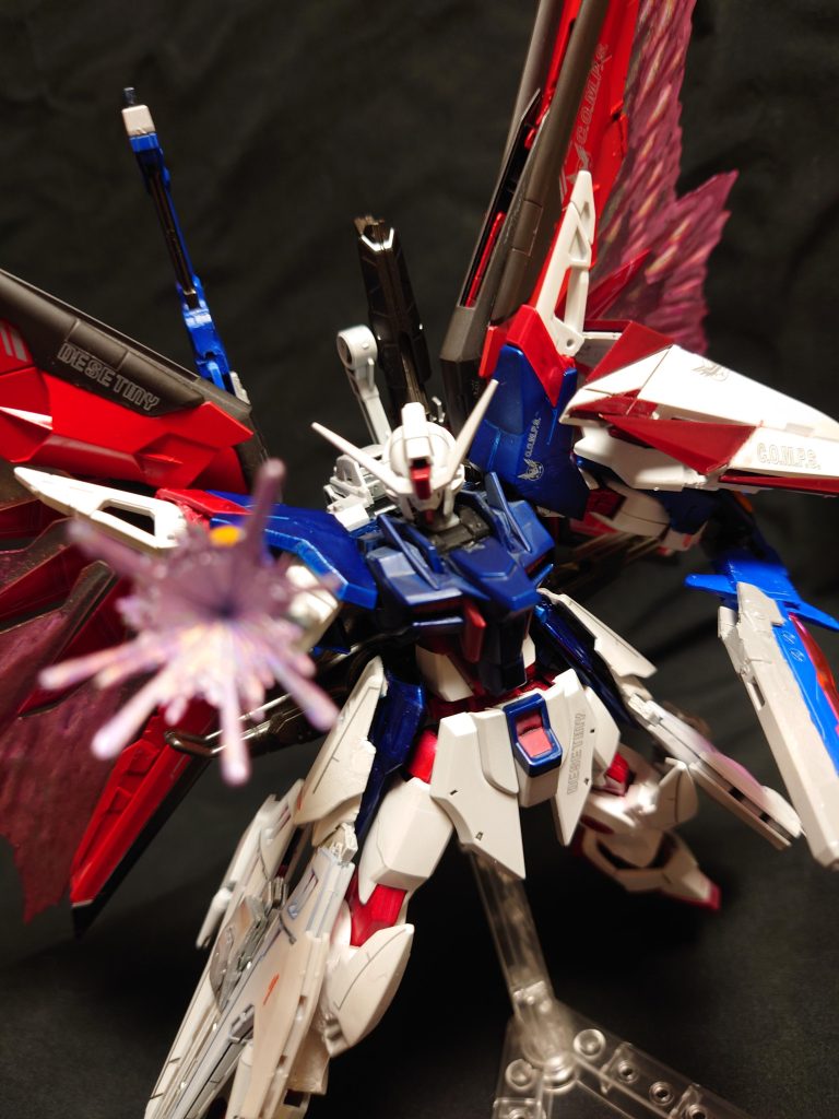 見た目はデスティニーですが素体はマイティーストライクフリーダムでそこに色んなパーツをミキシングしています。