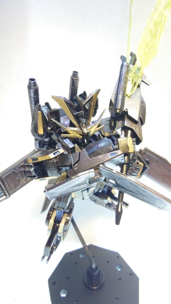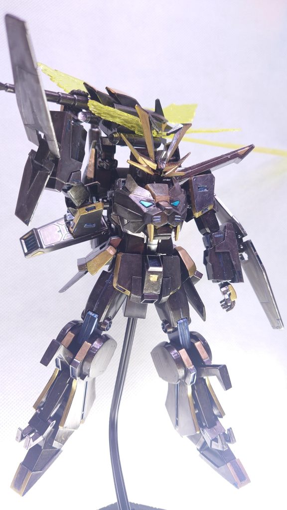 こちらはビームサーベルの柄の蓋を外して、ランナーの切れ端を差し込んでアニメにあるツインビームサーベルを再現してみる。